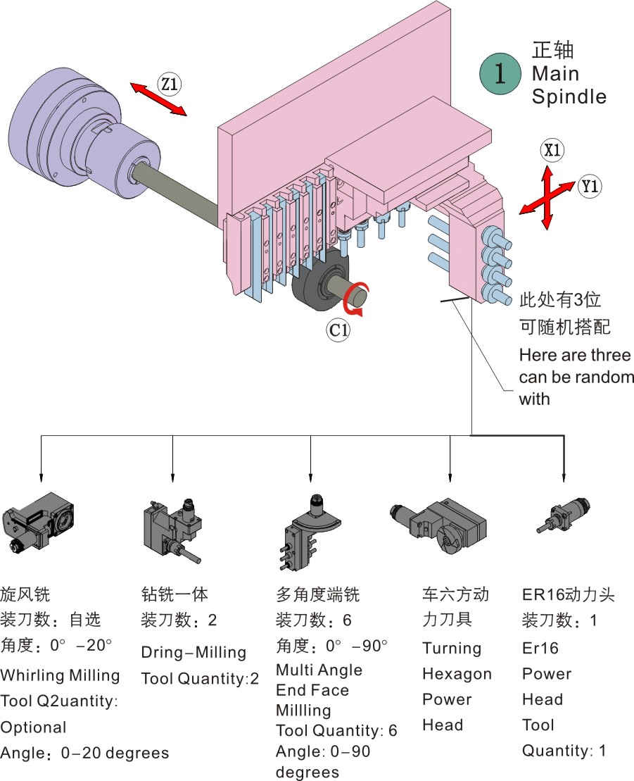 | 主軸側(cè)面動(dòng)力頭 | 4支 | 2支ER11+2支ER16 | |