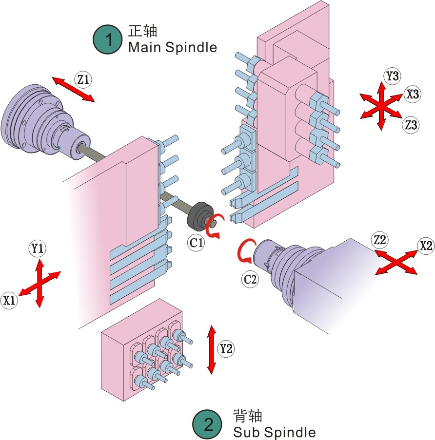 | 主軸外徑刀 | 主軸內徑刀 | 主軸側面動力頭 | 副軸內徑刀 | 副軸端面動力頭 |